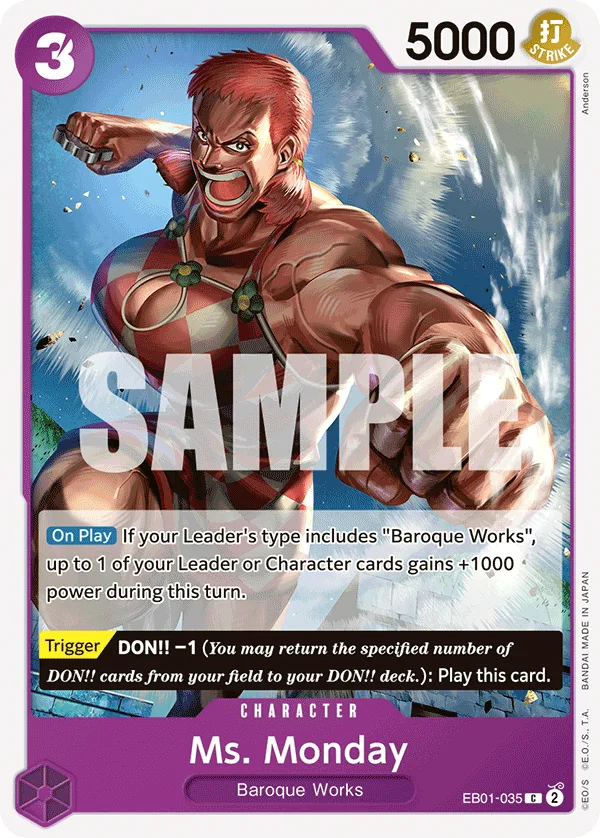 If your Leader's type includes "Baroque Works", up to 1 of your Leader or Character cards gains +1000 power during this turn.