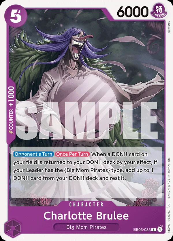 When a DON!! card on your field is returned to your DON!! deck by your effect, if your Leader has the Big Mom Pirates type, add up to 1 DON!! card from your DON!! deck and rest it.