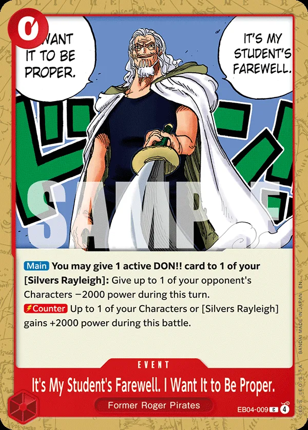 You may give 1 active DON!! card to 1 of your Silvers Rayleigh: Give up to 1 of your opponent's Characters −2000 power during this turn.