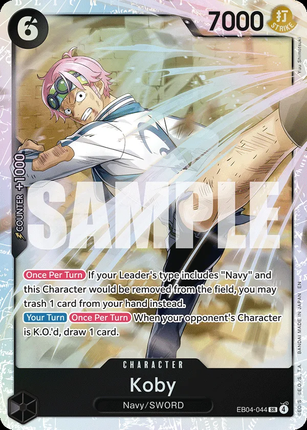 If your Leader's type includes "Navy" and this Character would be removed from the field, you may trash 1 card from your hand instead.