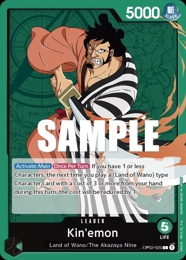 If you have 1 or less Characters, the next time you play a Land of Wano type Character card with a cost of 3 or more from your hand during this turn, the cost will be reduced by 1.