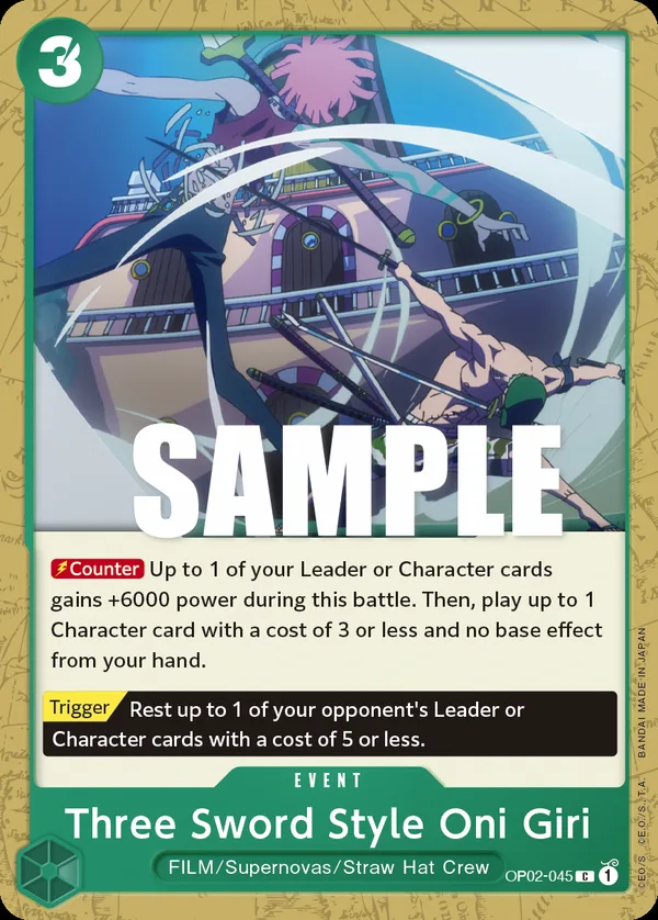 Up to 1 of your Leader or Character cards gains +6000 power during this battle. Then, play up to 1 Character card with a cost of 3 or less and no base effect from your hand.