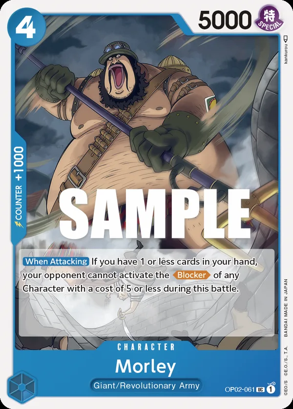 If you have 1 or less cards in your hand, your opponent cannot activate the Blocker of any Character with a cost of 5 or less during this battle.