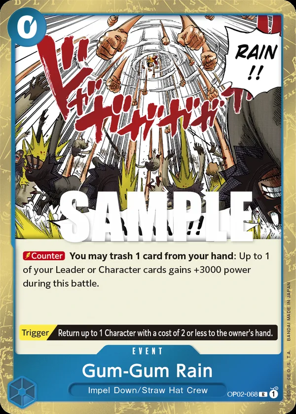 You may trash 1 card from your hand: Up to 1 of your Leader or Character cards gains +3000 power during this battle.