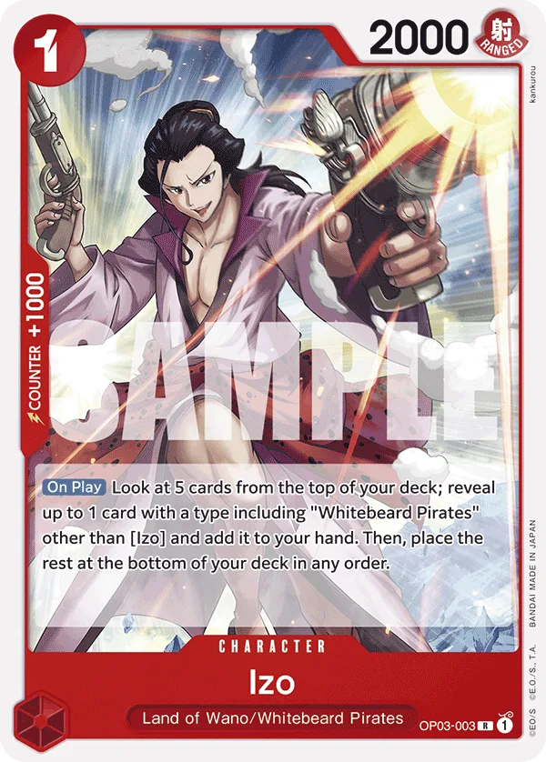 Look at 5 cards from the top of your deck; reveal up to 1 card with a type including "Whitebeard Pirates" other than Izo and add it to your hand. Then, place the rest at the bottom of your deck in any order.