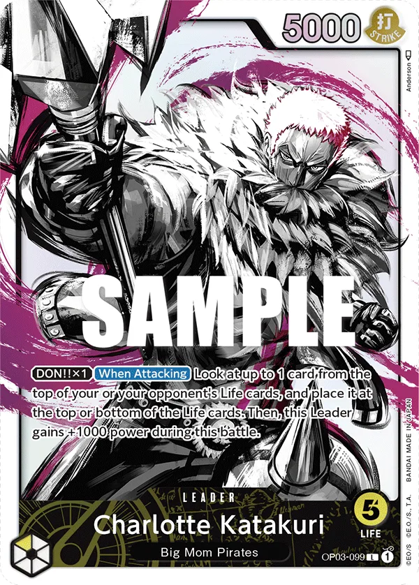 Look at up to 1 card from the top of your or your opponent's Life cards, and place it at the top or bottom of the Life cards. Then, this Leader gains +1000 power during this battle.