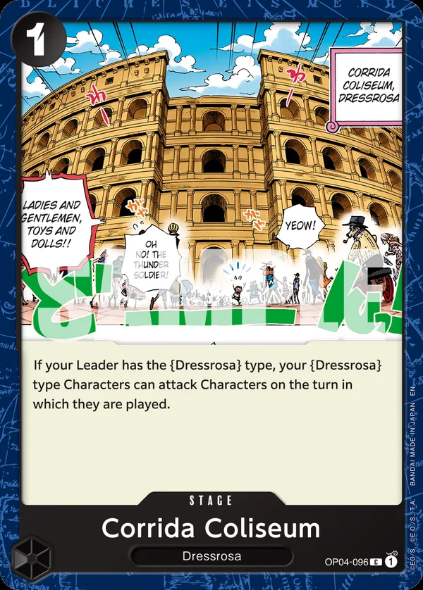 If your Leader has the Dressrosa type, your Dressrosa type Characters can attack Characters on the turn in which they are played.