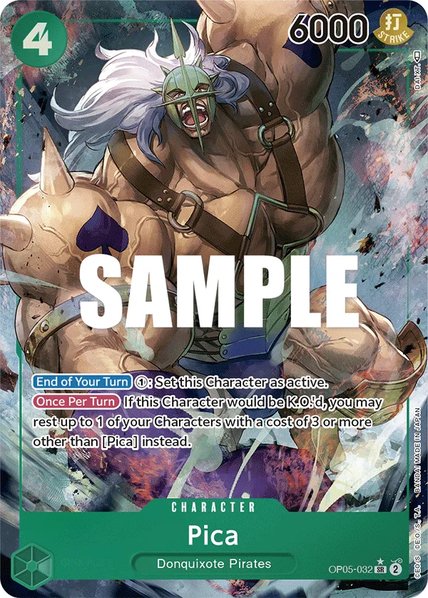If this Character would be K.O.'d, you may rest up to 1 of your Characters with a cost of 3 or more other than Pica instead.