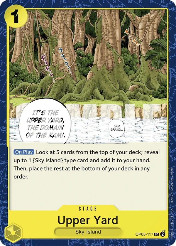 Look at 5 cards from the top of your deck; reveal up to 1 Sky Island type card and add it to your hand. Then, place the rest at the bottom of your deck in any order.