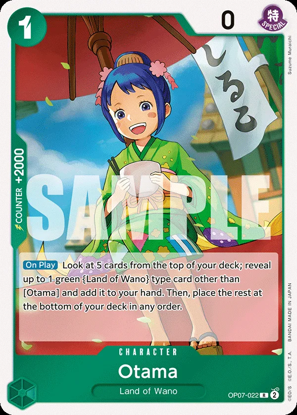 Look at 5 cards from the top of your deck; reveal up to 1 green Land of Wano type card other than Otama and add it to your hand. Then, place the rest at the bottom of your deck in any order.