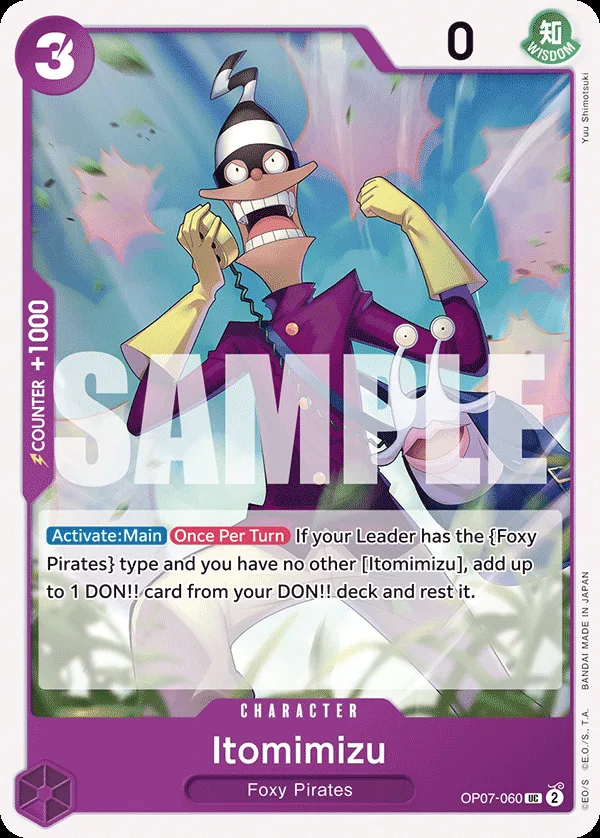 If your Leader has the Foxy Pirates type and you have no other Itomimizu, add up to 1 DON!! card from your DON!! deck and rest it.