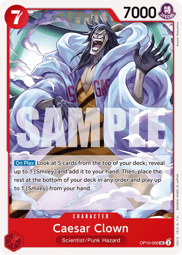 Look at 5 cards from the top of your deck; reveal up to 1 Smiley and add it to your hand. Then, place the rest at the bottom of your deck in any order and play up to 1 Smiley from your hand.