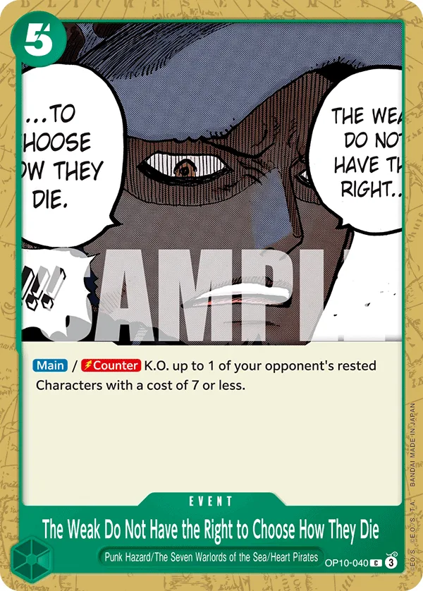 K.O. up to 1 of your opponent's rested Characters with a cost of 7 or less.