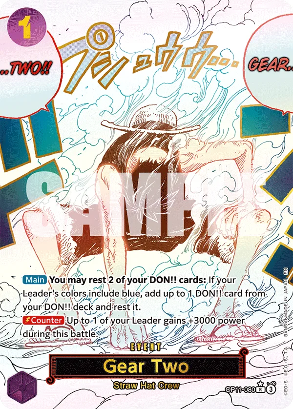 You may rest 2 of your DON!! cards: If your Leader's colors include blue, add up to 1 DON!! card from your DON!! deck and rest it.