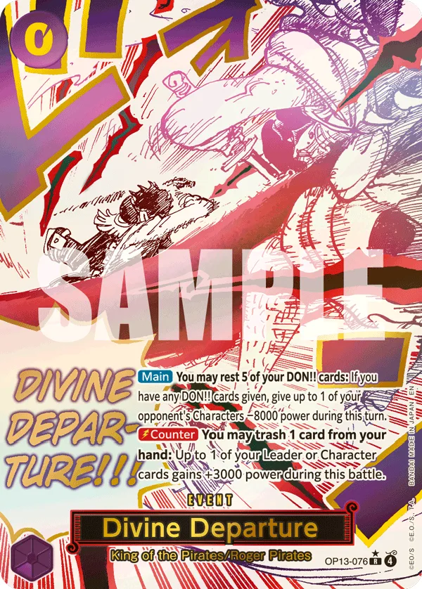 You may rest 5 of your DON!! cards: If you have any DON!! cards given, give up to 1 of your opponent's Characters −8000 power during this turn.
