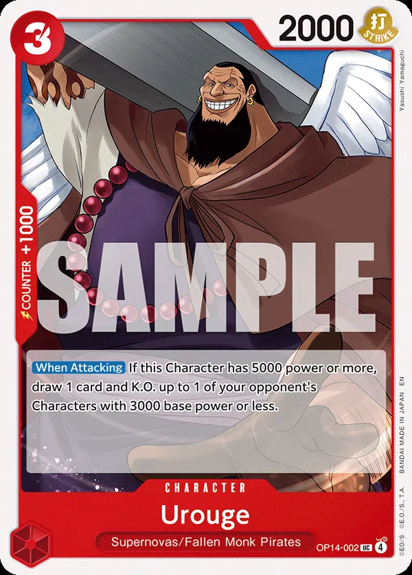 If this Character has 5000 power or more, draw 1 card and K.O. up to 1 of your opponent's Characters with 3000 base power or less.