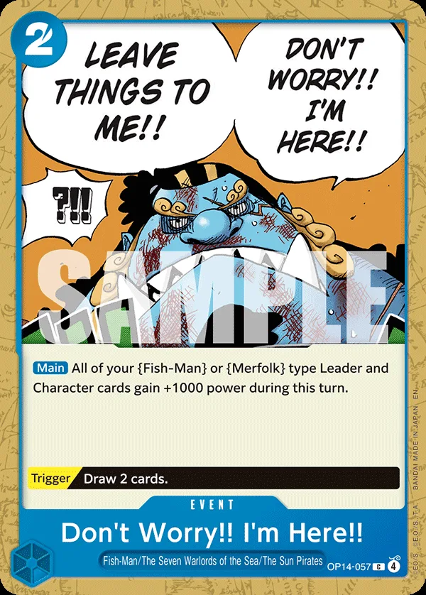 All of your Fish-Man or Merfolk type Leader and Character cards gain +1000 power during this turn.