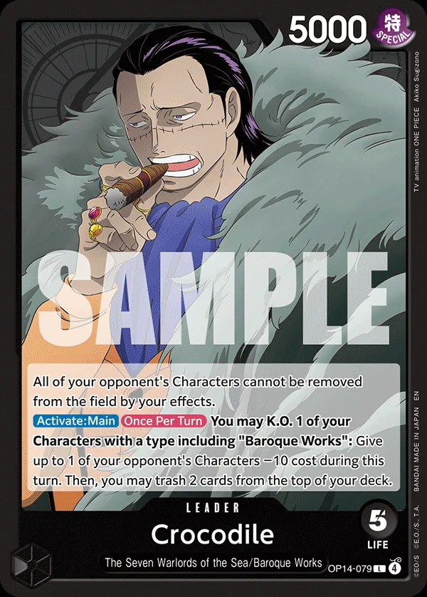 You may K.O. 1 of your Characters with a type including "Baroque Works": Give up to 1 of your opponent's Characters −10 cost during this turn. Then, you may trash 2 cards from the top of your deck.