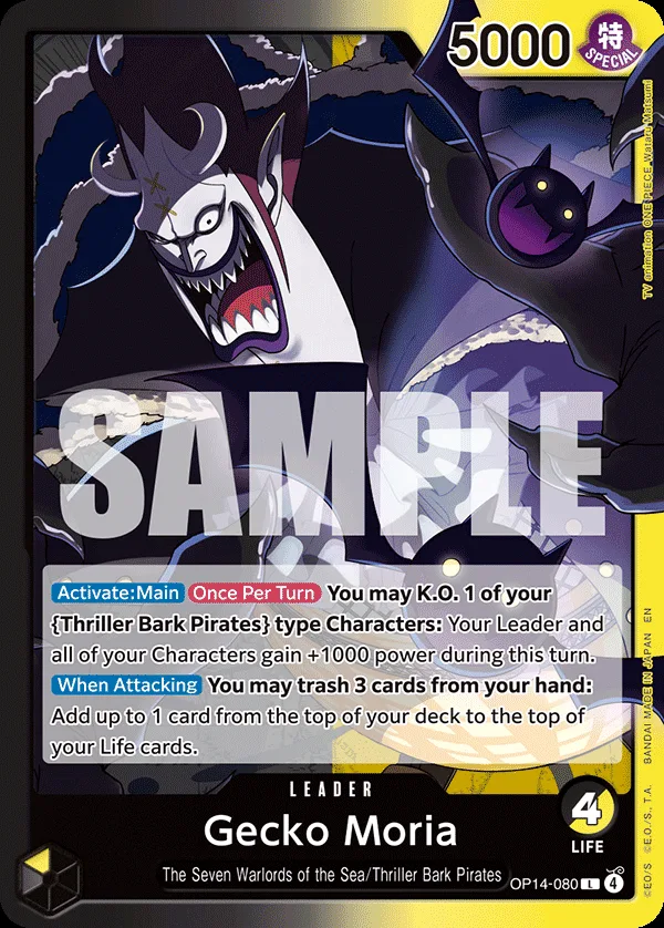 You may K.O. 1 of your Thriller Bark Pirates type Characters: Your Leader and all of your Characters gain +1000 power during this turn.