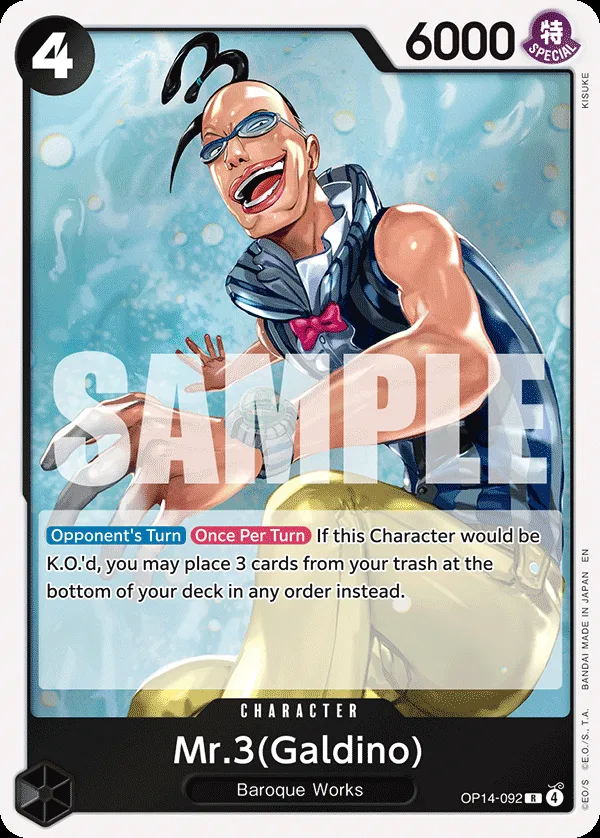 If this Character would be K.O.'d, you may place 3 cards from your trash at the bottom of your deck in any order instead.
