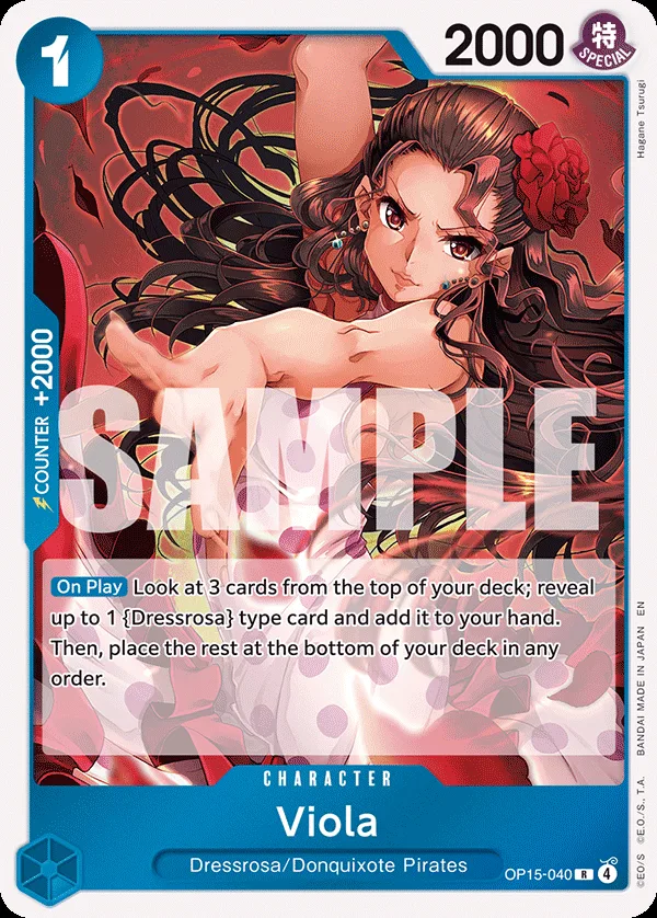 Look at 3 cards from the top of your deck; reveal up to 1 Dressrosa type card and add it to your hand. Then, place the rest at the bottom of your deck in any order.