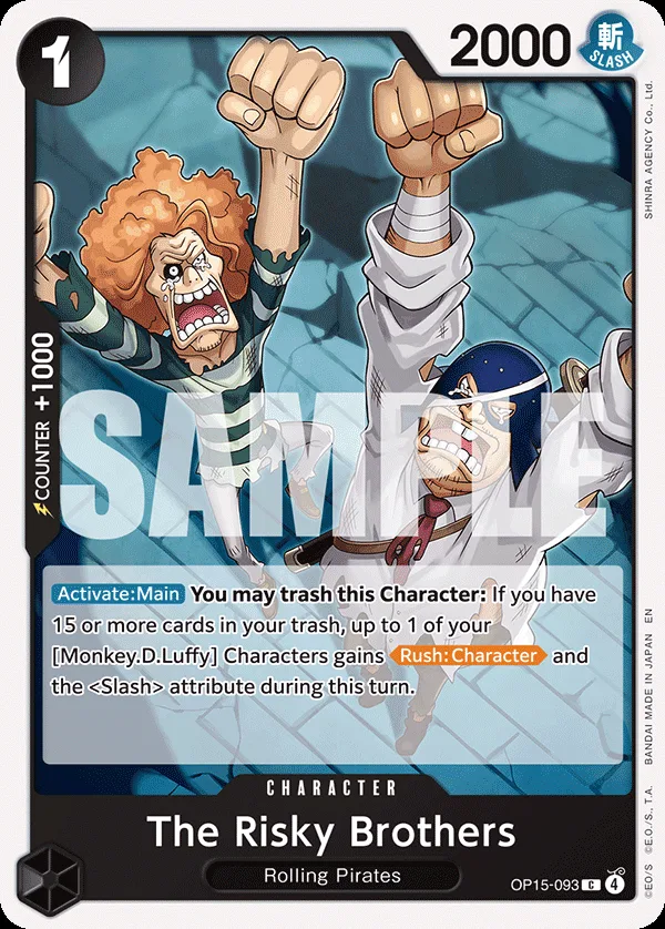 You may trash this Character: If you have 15 or more cards in your trash, up to 1 of your Monkey.D.Luffy Characters gains Rush: Character and the <Slash> attribute during this turn.