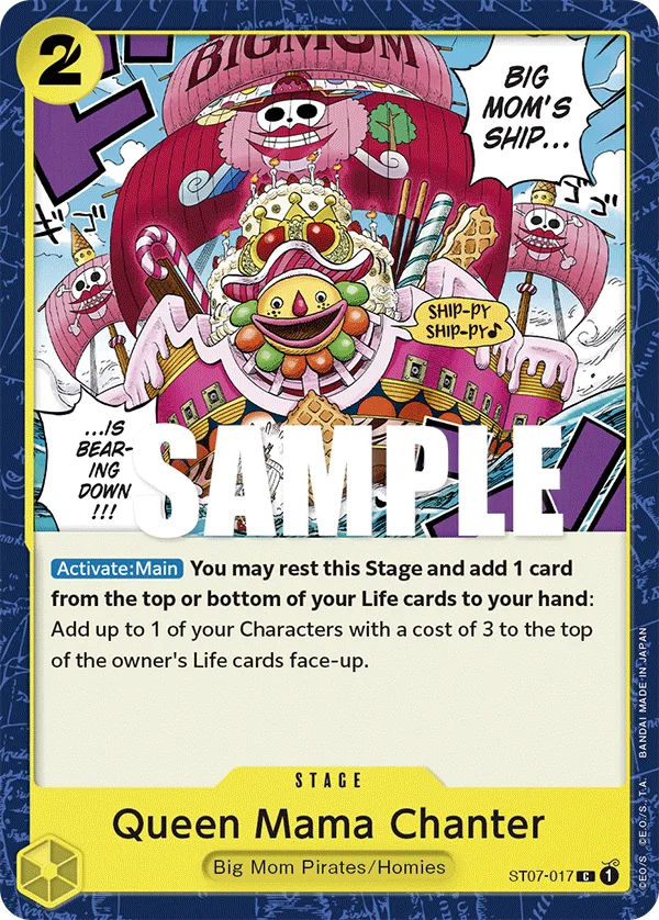 You may rest this Stage and add 1 card from the top or bottom of your Life cards to your hand: Add up to 1 of your Characters with a cost of 3 to the top of the owner's Life cards face-up.