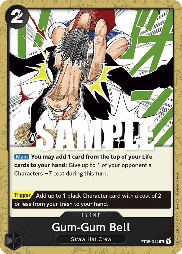 You may add 1 card from the top of your Life cards to your hand: Give up to 1 of your opponent's Characters −7 cost during this turn.
