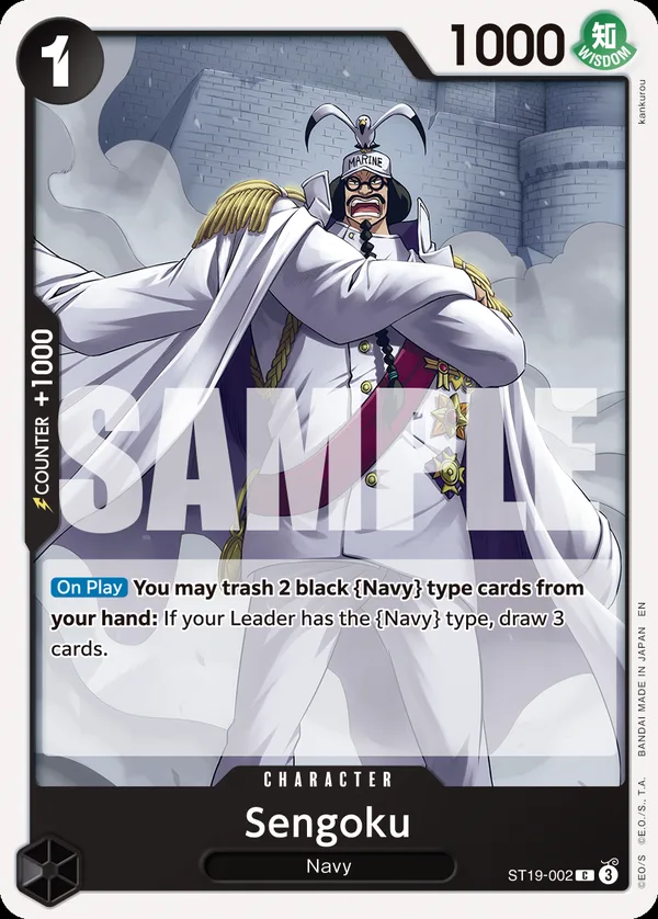 You may trash 2 black Navy type cards from your hand: If your Leader has the Navy type, draw 3 cards.