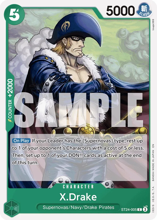 If your Leader has the Supernovas type, rest up to 1 of your opponent's Characters with a cost of 5 or less. Then, set up to 1 of your DON!! cards as active at the end of this turn.
