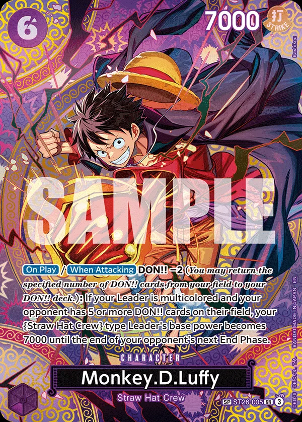 DON!! −2 (You may return the specified number of DON!! cards from your field to your DON!! deck.): If your Leader is multicolored and your opponent has 5 or more DON!! cards on their field, your Straw Hat Crew type Leader's base power becomes 7000 until the end of your opponent's next End Phase.